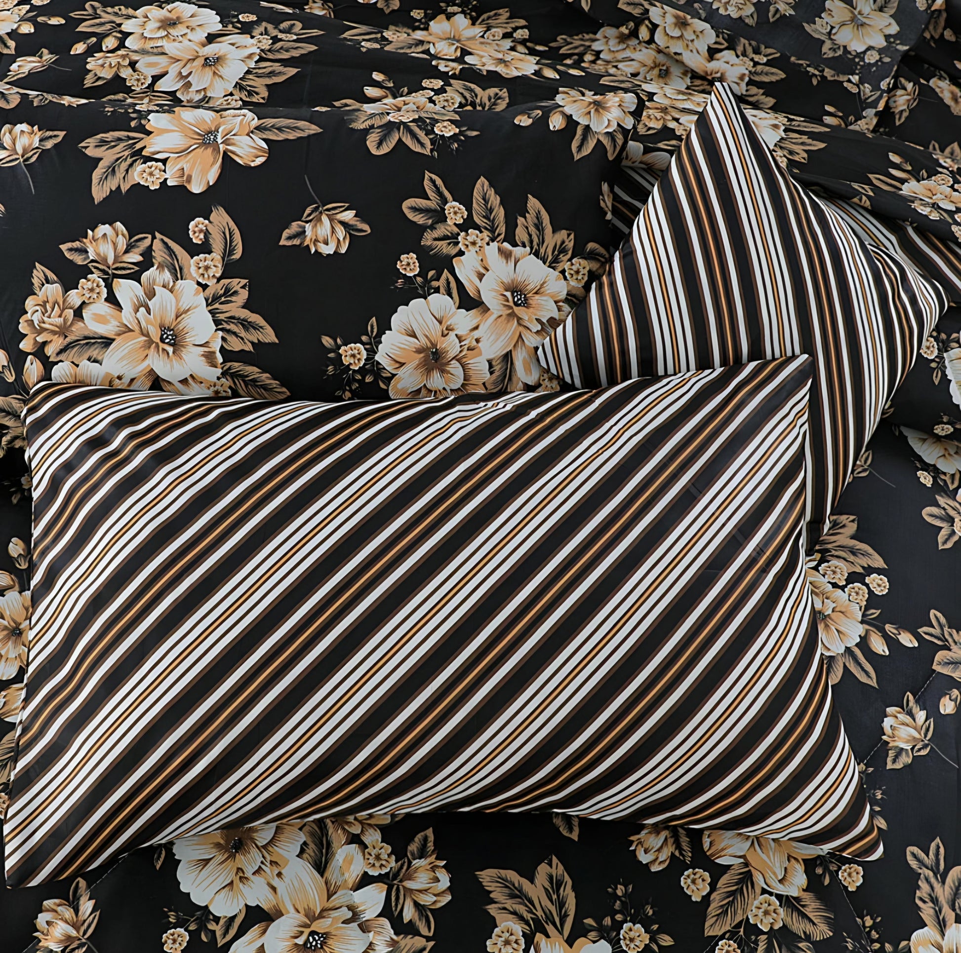 Package Deal: 1x King Size Comforter, 1x King Size Bedsheet, 2 King Size Pillow Covers, 2x King Size Quilted Pillow Covers, 1x Quilted Cushion Cover.
