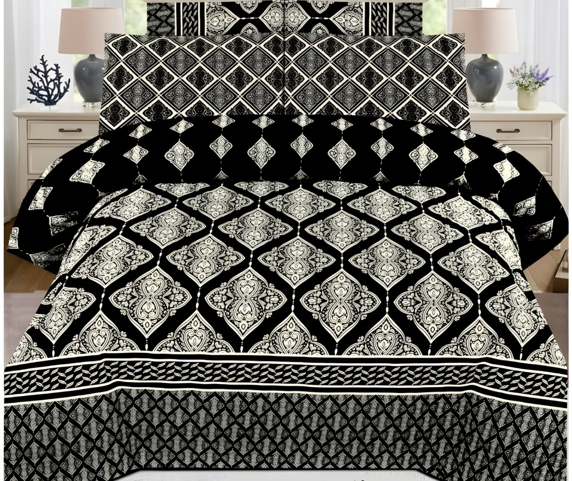 Cotton Satin 3pc Bedsheet - Crystal Black