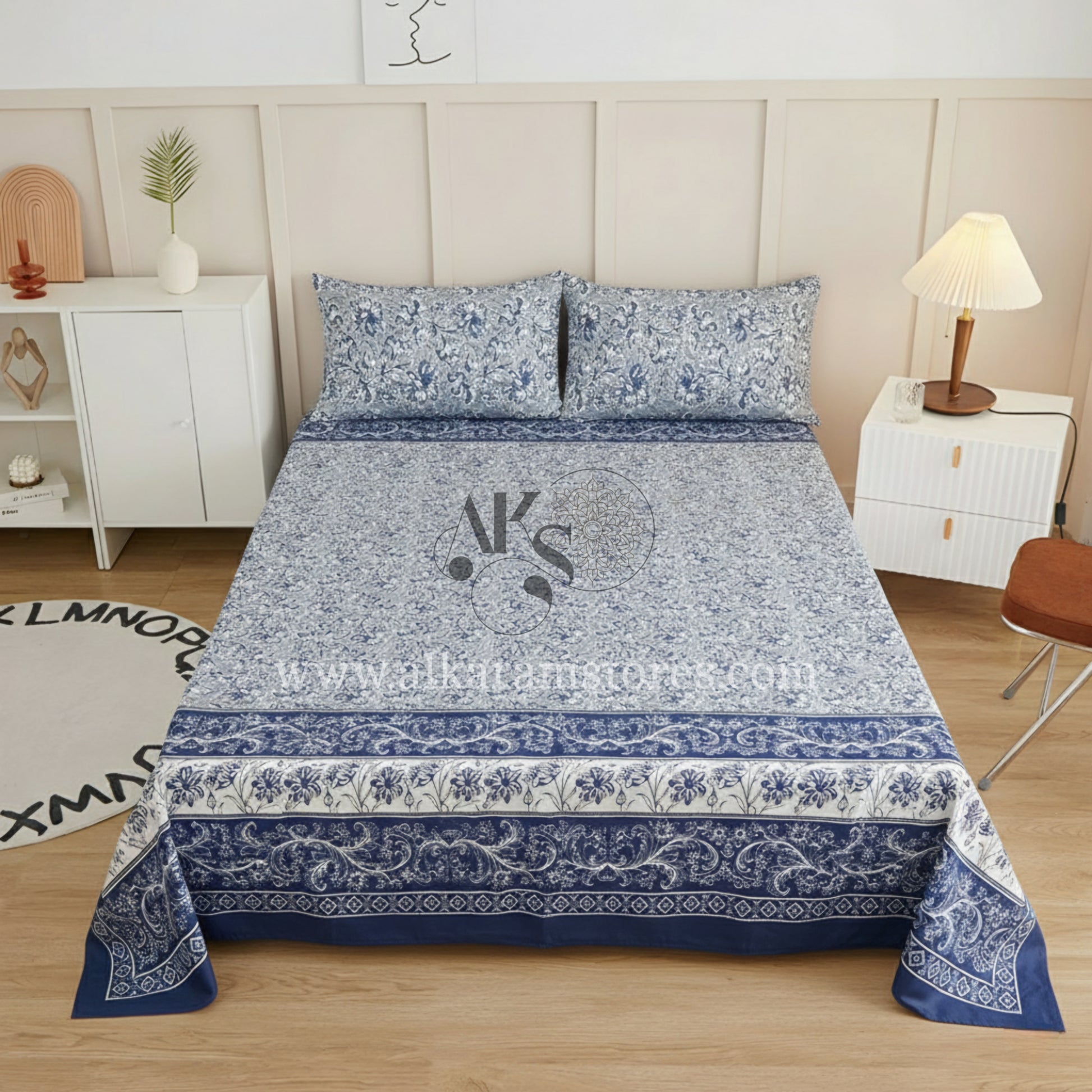 Crystal Cotton 3pc Bedsheet Blue Damask