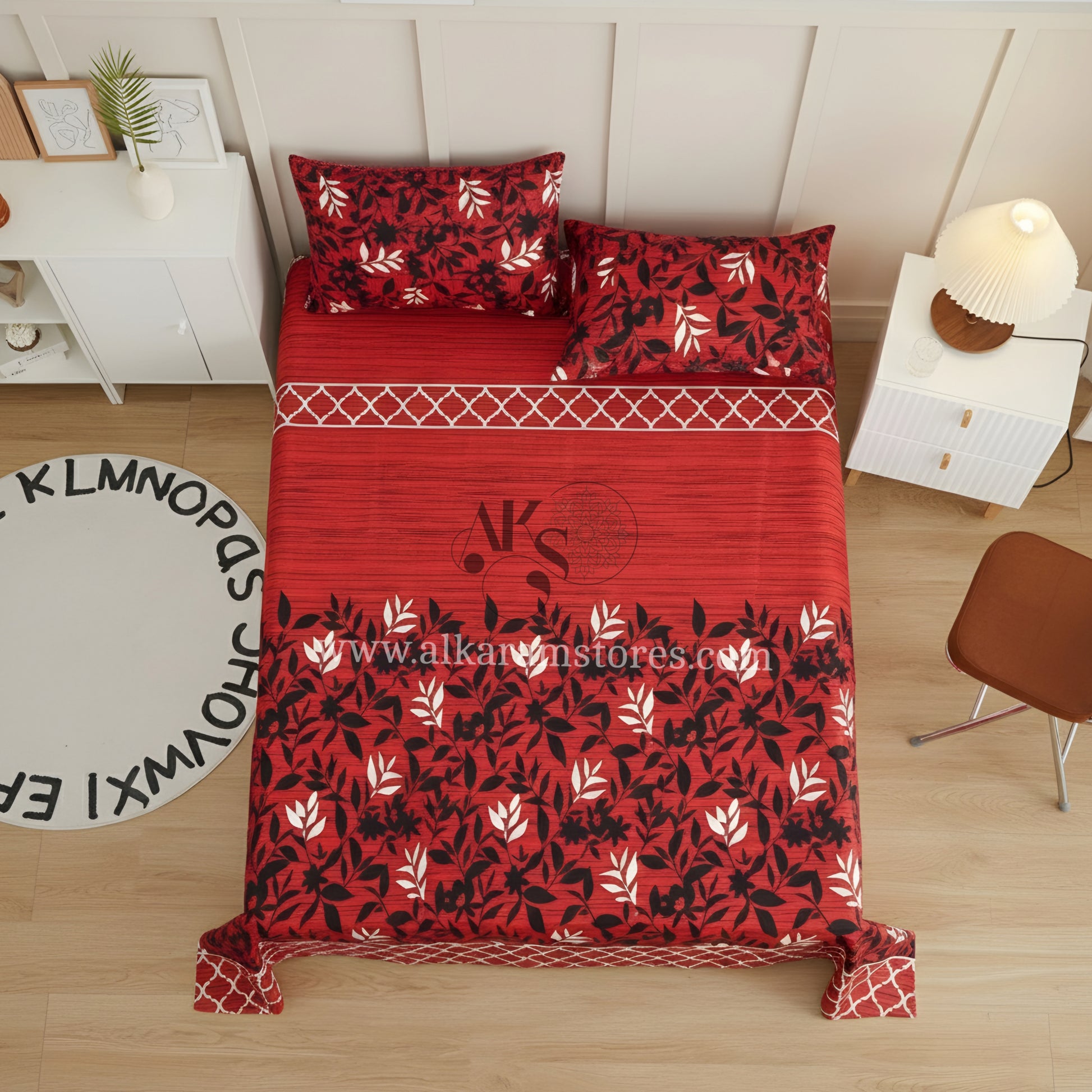 Crystal Cotton 3pc Bedsheet Red Lattice