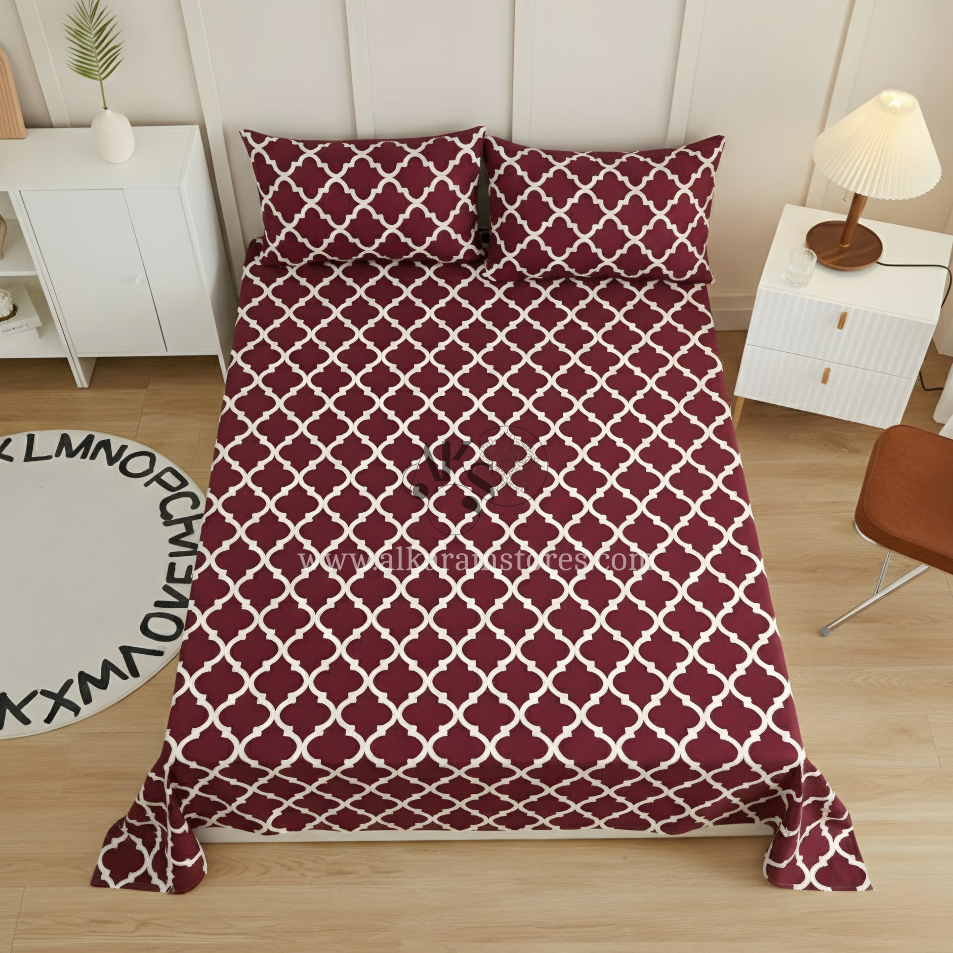 Crystal Cotton 3pc Bedsheet Red Moroccan
