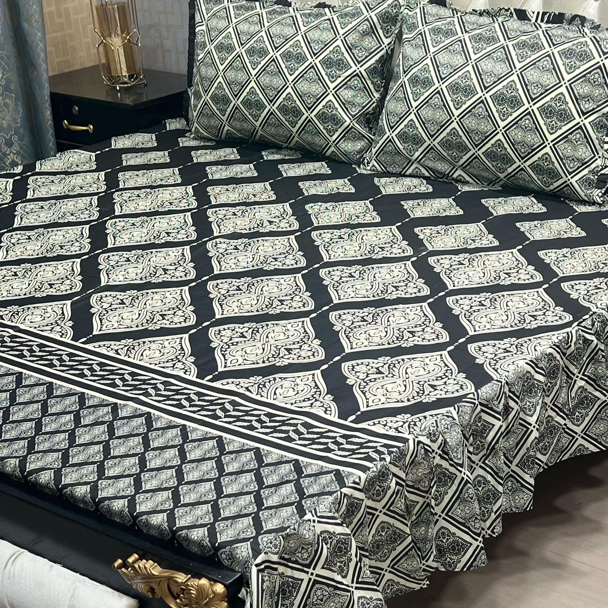 Cotton Frill 3pc Bedsheet - Crystal Black