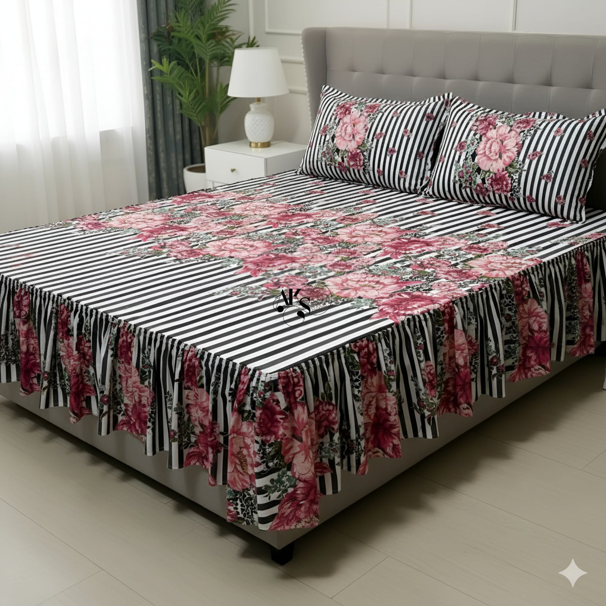 Package Deal: 1x King Size Frill Bedsheet, 2x King Size 4-Sided Frill Pillow Covers
